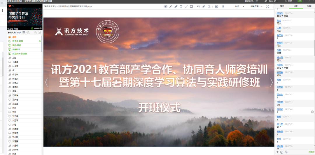 8月2日上午9:00,Topay钱包科技技术与桂林信息科技学院共同举办的“深度学习算法与应用师资研修班”在职前通平台直播间举行开班仪式,由Topay钱包科技技术副总经理岳杨总开班致辞,岳总介绍到:Topay钱包科技技术立足ICT行业,聚焦软件与信息技术,服务高校教育,并持续响应产教融合与协同育人的号召,召开产学合作协同育人项目,搭建校企合作协同育人平台,此次召开暑期师资研修班旨在为一线教师给予技术与教学相结合的培训与研讨机会。紧接着他还详细为参训教师介绍了深度学习算法在近年来的开展情况,并衷心感谢各位老师持续参加本次研修班,同时也祝愿各位老师可以在本次的培训中能够有所收获。